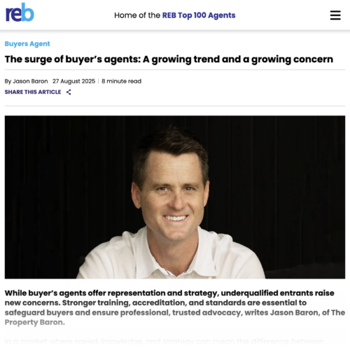 - REB The surge of buyer’s agents: A growing trend and a growing concern By leading Australian Buyers Agent, Jason Baron Read more here